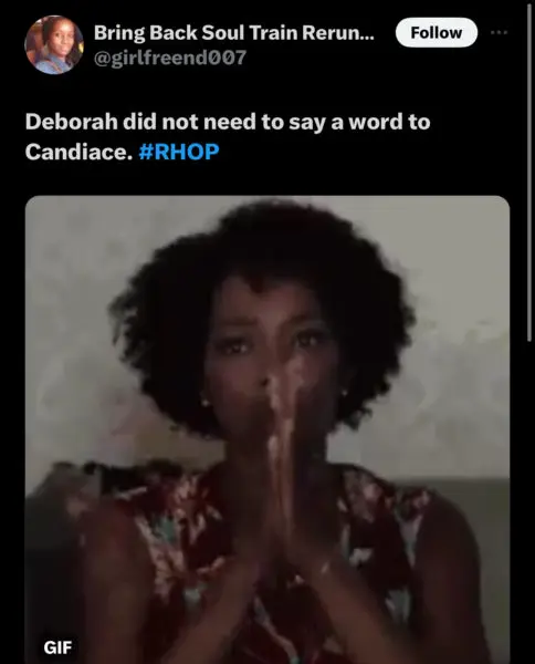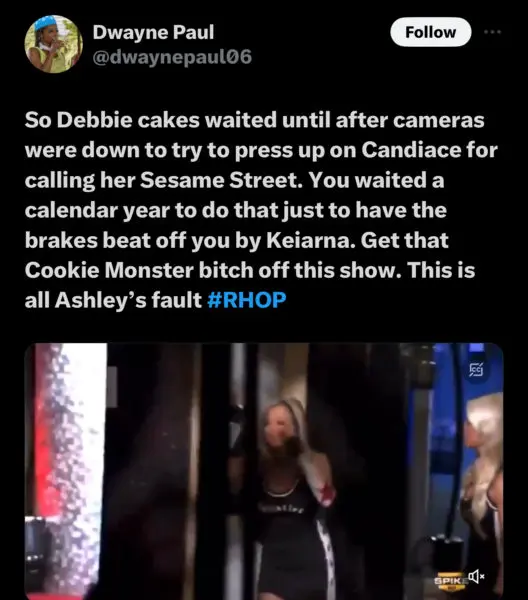 Last season, Candiace Dillard Bassett referred to Deborah as a “Sesame Street character” after Deborah accused Candiance’s husband, Chris Bassett, of flirting with her at a party.
