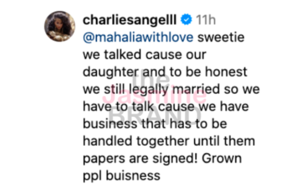 “sweetie we talked cause our daughter and to be honest we still legally married so we have to talk cause we have business that has to be handled together until them papers are signed! Grown ppl buisness”