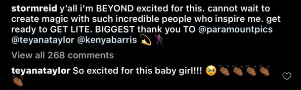Storm Reid also made a post about it on her Instagram. The Atlanta native wrote,