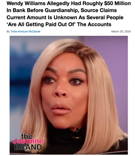 As previously reported, Wendy was placed under court-appointed guardianship in 2022 after Wells Fargo froze her accounts over concern she was experiencing “financial exploitation, dementia, or undue influence.” After her guardian – Sabrina Morrissey – came into play, it’s alleged the financial support the media personality was previously providing her son was still not reinstated.