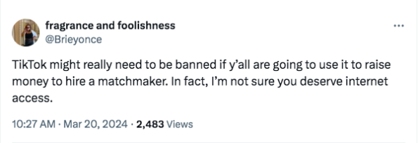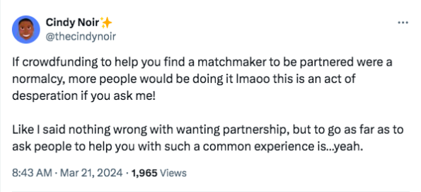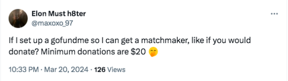 Making a gofundme to hire a matchmaker is wildly insane. pic.twitter.com/DkbH5qLgJY