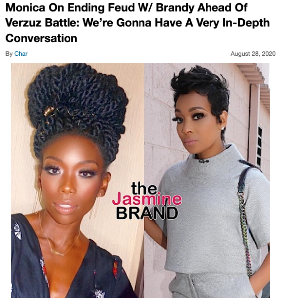 Ahead of their Verzuz battle, however, Brandy explained that they were pitted against each other and both admitted to giving in to the drama. Monica and Brandy have since offered their apologies to each other, and have seemingly been on good terms.