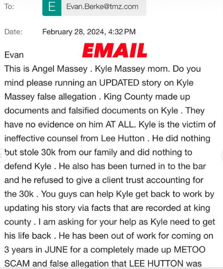 “Do you mind please running an UPDATED story on Kyle Massey false allegation. King County made up documents and falsified documents on Kyle. They have no evidence on him AT ALL. Kyle is the victim of ineffective counsel.”