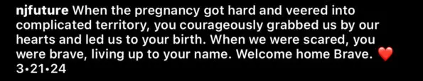 “When we were scared, you were brave, living up to your name. Welcome home Brave. 3-21-24”