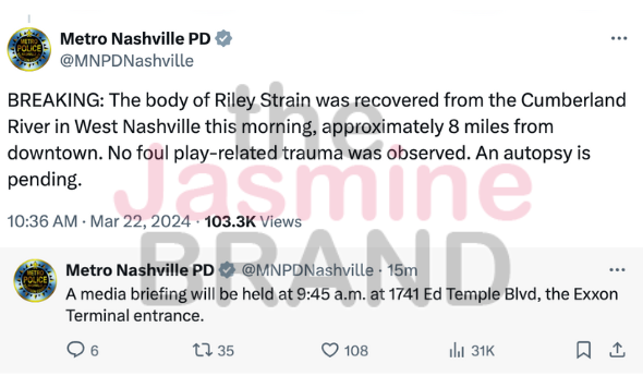 “The body of Riley Strain was recovered from the Cumberland River in West Nashville this morning, approximately 8 miles from downtown.”