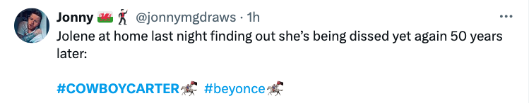 Rumors about potential features for the album have been swirling in the days leading up to its release, with strong speculations circling around country star Dolly Parton. The country icon fueled the rumors when she claimed to believe Beyoncé was planning to do a rendition of her famed heartbreak song “Jolene”, which does, in fact, appear on the album. Parton herself introduced the song, and fans seem to approve of Beyoncé’s reimagining of it.