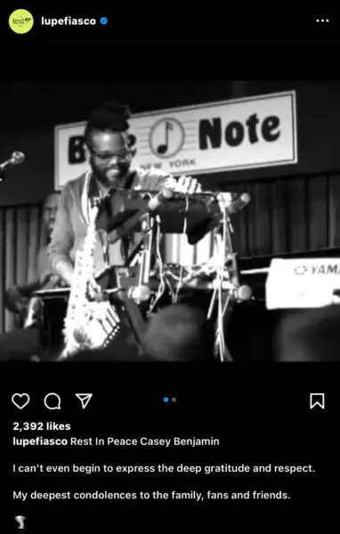 “Rest In Peace Casey Benjamin. I can’t even begin to express the deep gratitude and respect. My deepest condolences to the family, fans and friends.”