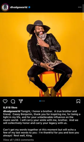 In addition, Derrick Hodge, who played with Casey Benjamin in the “Robert Glasper Experiment,” called the musician “a true brother and friend” in a post on Instagram. He added, in part,