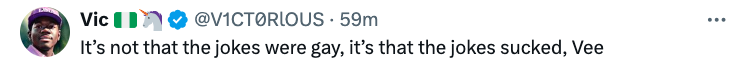 Despite comedians continuing to address the issue, it seems many commenters don’t agree with their plight. Reacting to Vee’s video, social media users argued that the line between funny and offensive is often crossed which is the true root of the problem. Others argued that the issue is likely with the comics, as they should be able to still generate material without picking at minority and ostracized groups. A few, however, agreed with Vee’s stance. See a few reactions below.