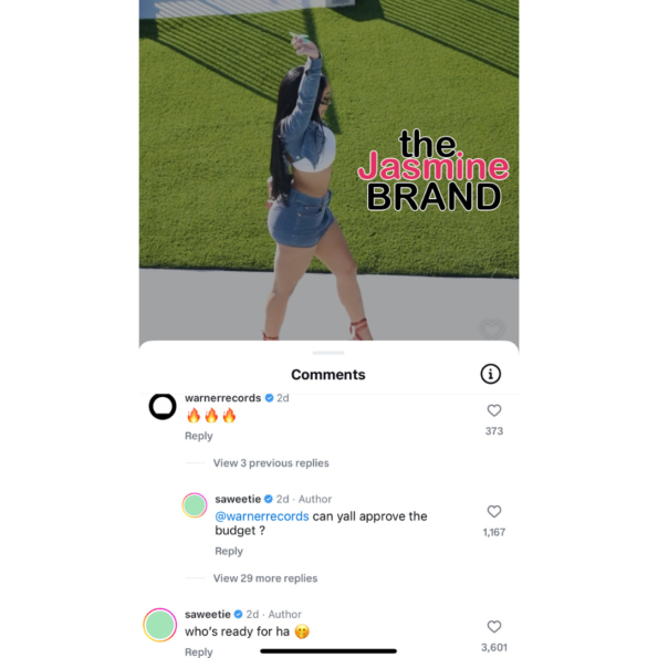 Saweetie, real name Diamonté Quiava Valentin Harper, made the remark under a reel she recently posted to Instagram featuring a snippet of her unreleased single titled “Nani.” After her record label commented fire emoji’s under the video, the self-proclaimed ‘Icy Girl’ wrote back: