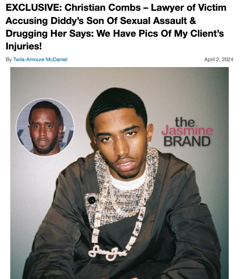 After theJasmineBrand’s exclusive report of a forthcoming lawsuit earlier this week, a woman named Gracie O’Marcaigh filed the suit against Christian Combs alleging he was sexually inappropriate with her during one of his father’s yacht events.