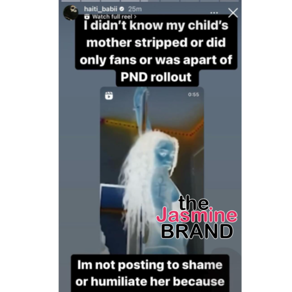 Subsequently, California rapper Haiti Babii , real name Amari Amil Proctor, confirmed that he shares a child with the woman and that he isn’t looking to “shame” her actions. He wrote in what in a since deleted or expired Instagram story: