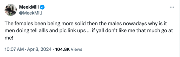 Unfortunately, the response only seemed to anger Meek, 36, more. Continuing his rant, he said,