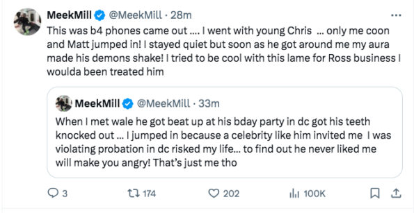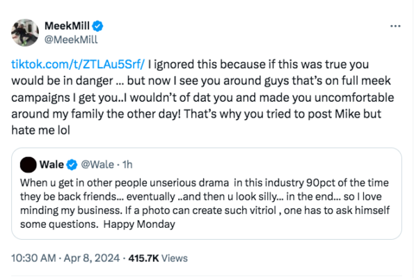 Appearing to address what Meek Mill said, Wale, 39, wrote via his own X account,
