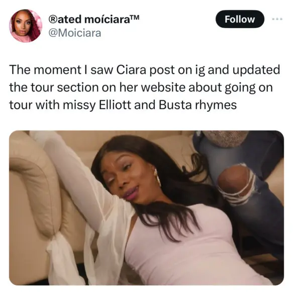 In a clip teasing the tour shared today (April 8), Missy Elliott, 52, announced the exciting news. The futuristic teaser also featured a few big-named supporting acts who are set to go on tour with the legendary rapper, including fellow rappers Busta Rhymes and Timbaland, and singer Ciara.