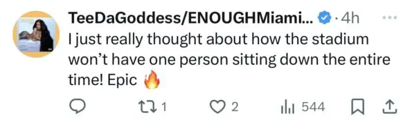 “I just really thought about how the stadium won’t have one person sitting down the entire time! Epic”