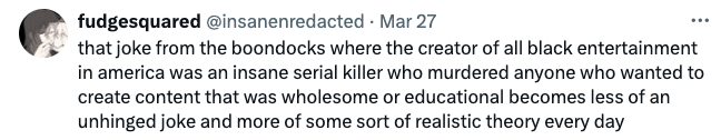 “No. Hell, NO. The essence of Good Times was about a solid family working hard to make their lives better in the system of inequality and life turns, ups, and downs. Nobody needs this racist hood rat bull. I’m tired of black entertainment today being reduced to this… insult.”