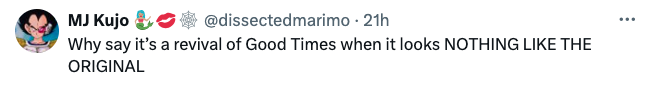 “Why say it’s a revival of Good Times when it looks NOTHING LIKE THE ORIGINAL”