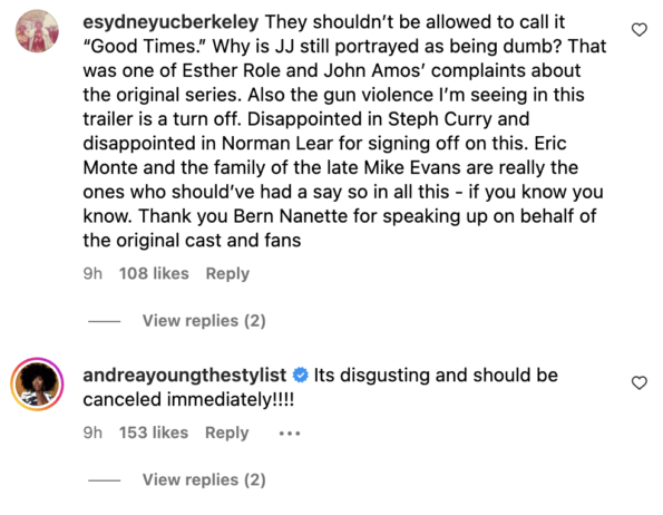 BerNadette Stanis, who is releasing a memoir about her time on Good Times, shared the TMZ interview on her Instagram page, where fans also criticize the reboot in the comment section. See a few remarks below.