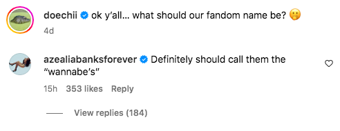 Last night (Apr. 9) the two music artists had somewhat of a heated exchange on Instagram. The drama started over a four-day-old post of 25-year-old Doechii asking her fans what their fandom name should be. Azealia Banks, seemingly late to the poll, hopped into the comment section around 7:30 pm EST and offered a shady suggestion, writing,