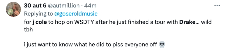 Though J. Cole didn’t make any direct disses about Drake on the feature, many felt he switched up on the “Hotline Bling” artist for even appearing on the album at all. Reacting to the situation, one user wrote: