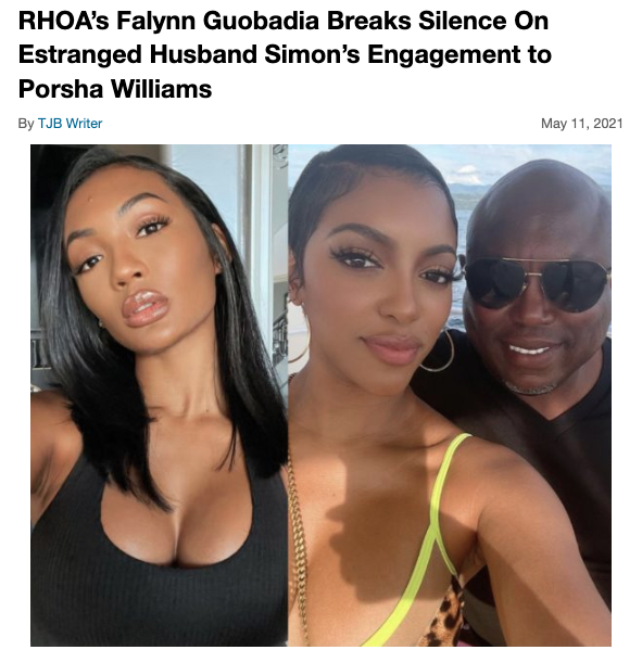 Initially, Falynn denied assumptions that Simon Guobadia was unfaithful during their marriage. She also refused to blame Porsha for the break-up, stating that the failed union was the fault of her and Guobadia alone. Judging by her recent comments, however, it’s clear she still holds some type of animosity towards her fellow reality star. As you may know, Porsha and Simon did in fact tie the knot and have since split. The pair are currently going through a divorce that has been playing out pretty harshly in the media.