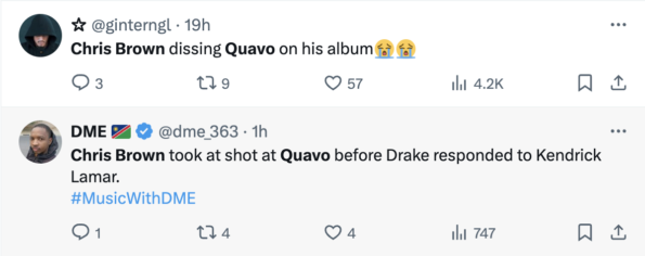 It’s not exactly clear what girl Chris Brown was referring to, but back in 2022, Quavo was spotted seemingly on vacation with the “Deuces” singer’s ex-girlfriend, Karrueche Tran.