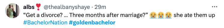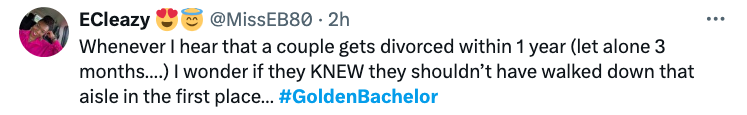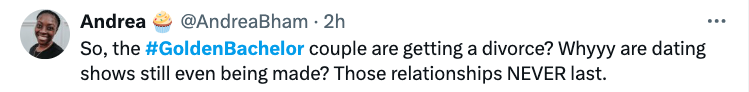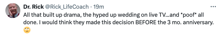 While things are peaceful between the ex-couple, it seems social media is fed up with the antics of dating to marriage reality shows. Many have been reacting to the divorce news, expressing their frustrations that couples who “find love” on these shows continue to get divorced. Some claimed not to be shocked by the news while others opted to blame Turner, alleging he didn’t seem like he wanted to marry Nist in the first place. See reactions below:
