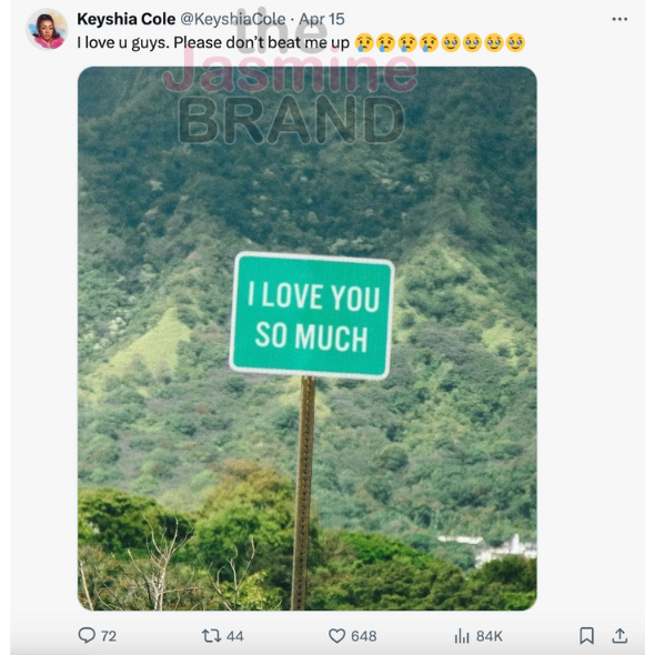 — Keyshia Cole (@KeyshiaCole) April 15, 2024