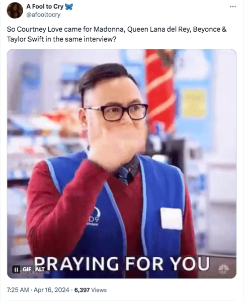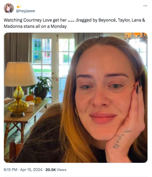 Taylor Swift and Beyoncé weren’t the only ones Love took shots at. She also aimed her sights at Madonna, letting it be known she doesn’t “like her” and the “Material Girl” artist’s feelings are mutual. In addition, Love called out Lana Del Rey, saying,