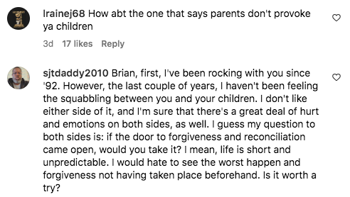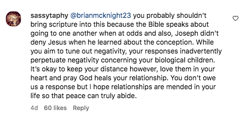 Naturally, the comments filled with people reminding him of the fact that he’s Briana’s father as well. Responding to one critic who slammed him for allegedly disowning his children from his former relationships, Brian McKnight wrote,