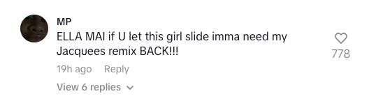 “ELLA MAI if U let this girl slide imma need my Jacquees remix BACK!!!”