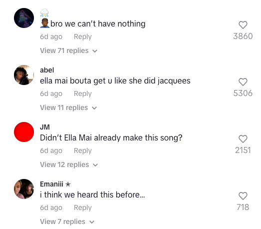 Of course, covers are nothing new, and countless people have shared footage online singing Ella Mai’s lyrics. However, fans of the London native have taken great issue that Kylie Cantrall seemingly tried to pass the tune off as an original song. Others have also called for Mai to treat the “Descendants: The Rise of Red” actress the same way she did Jacquees when he remixed her song “Trip.”