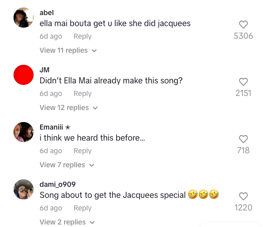“ELLA MAI if U let this girl slide imma need my Jacquees remix BACK!!!”