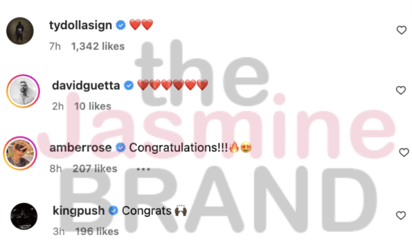 The couple received congratulatory messages from fellow celebs like Ty Dolla $ign and David Guetta who commented with two heart Emojis.