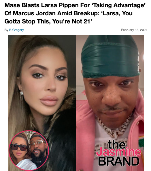 A month later it appeared the pair had split again and were calling things off for good. Judging by the recent meetup, however, it seems safe to say the door for reconciliation remains open. Pippen and Jordan first sparked their romance in 2022 and have continuously been scrutinized over their 16-year age gap, among other things. Reacting to news of their breakup, rapper Mase joined the conversation recently condemning Pippen for “taking advantage” of the Jordan heir.