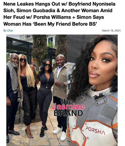 Whitfield is not the only one of Porsha Williams‘ associates who has caught flack for hanging out with Guobadia amid their breakup. As we reported in March, Bravo alum Nene Leakes was also spotted spending personal time with Guobadia and others, sparking criticism online and tension between her and Williams.