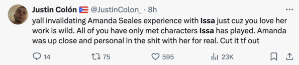 In the clip, Amanda Seales details her history with Issa, like being thrown out of a Black Emmy’s party by Issa’s publicist, Vanessa Anderson, in 2019. At the time, Amanda shared her recount on social media and said Issa later called her, telling her that she never asked her publicist to remove Amanda from the party.