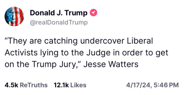 In a hearing held earlier today (Tuesday, April 30th), Manhattan Supreme Court Judge Juan Merchan reportedly held Donald Trump in contempt for violating a gag order at least 9 times on social media. The judge ruled that in several posts uploaded to his platform Truth Social, Donald Trump made attempts to discredit the validity of the case. He reportedly referenced one post in particular where the 45th US president rephrased a remark from a Fox News host that claimed “undercover Liberal Activists” are “lying to the Judge in order to get on the Trump Jury,” stating the post was clearly meant to: