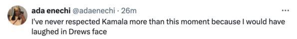 “I’ve never respected Kamala more than this moment because I would have laughed in Drew’s face.”