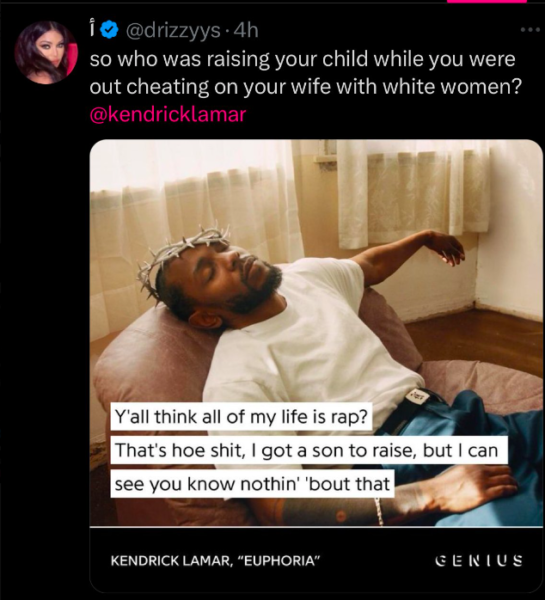 Well, it appears Lil Yachty heard the diss but seemingly wants nothing to do with the back-and-forth. The Georgia native recently liked a post on X that defends Drake’s alleged parenting style (or lack thereof) by questioning who was raising Kendrick’s son when he was (allegedly) cheating on his fiancée, Whitney Alford, “with a white woman.”