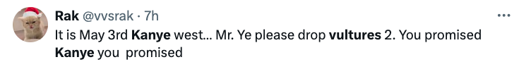 Many have been expressing their disappointment that the musician didn’t release his highly anticipated Vultures 2 album with Ty Dolla $ign, which was slated to drop at midnight today (Friday, May 3rd).