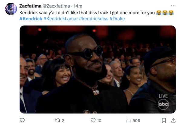 He also appeared to make fun of Kendrick Lamar’s lyrics about hating nearly everything about him.