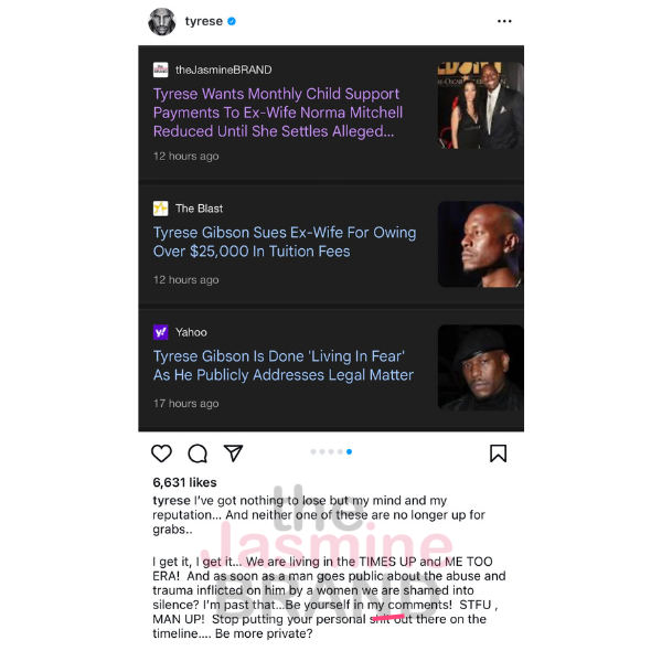 Also mentioning his ongoing divorce from his second ex-wife Samantha Gibson, Tyrese continued: