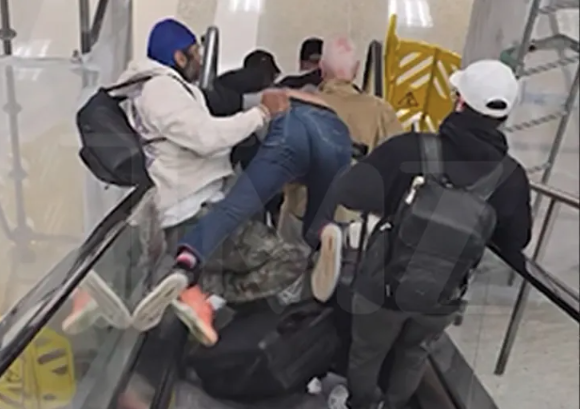 TMZ just released footage of #JimJones involved in an altercation with two men at Fort Lauderdale-Hollywood International Airport in Florida pic.twitter.com/zQSAE6qC2k