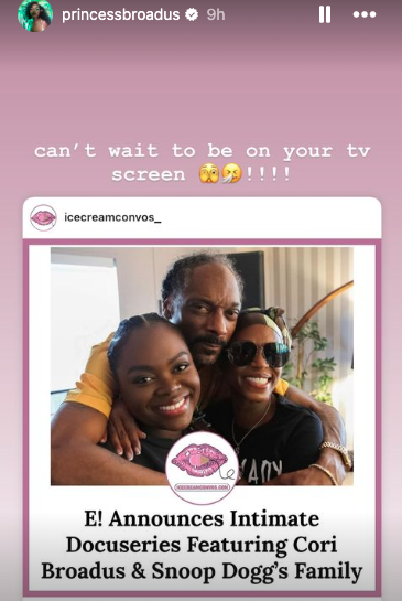 Snoop Dogg’s Daughter Cori Broadus Says She ‘Can’t Wait To Be On Your TV’ Following News She Will Star In E! Docu-Series Produced By Her Dad