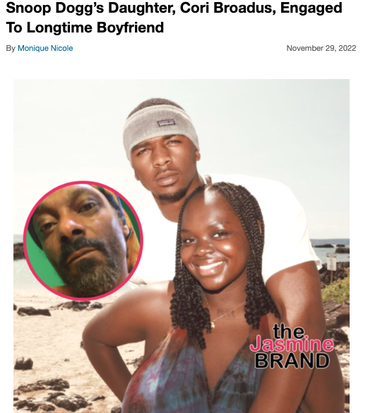 Reportedly, Snoop Dogg is producing the project in collaboration with E!, Death Row Pictures and 101 Studios. The series, which is reportedly untitled at this time, will star Cori Broadus, 24, and her fiancé, Wayne Deuce, 31, as they deal with life while preparing for their upcoming wedding day. As previously reported, the couple got engaged back in 2022 and received an outpour of support from Snoop Dogg and his wife and Shante Broadus.