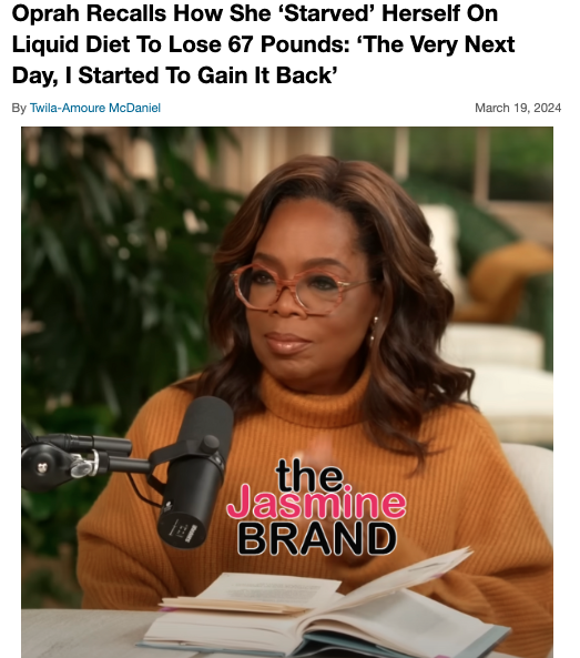 Oprah Regrets Promoting ‘Toxic’ Diet Culture, Says There’s Nothing Wrong w/Needing Assistance From Weight Loss Drugs