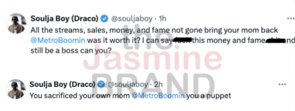 Soulja Boy then taunted Metro Boomin over the 2022 death of his mother.