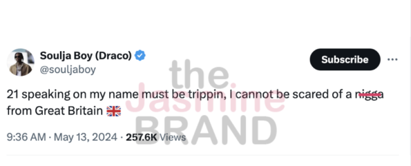 Soulja Boy refused to give in that easily and fired off more tweets against the London native. He wrote,